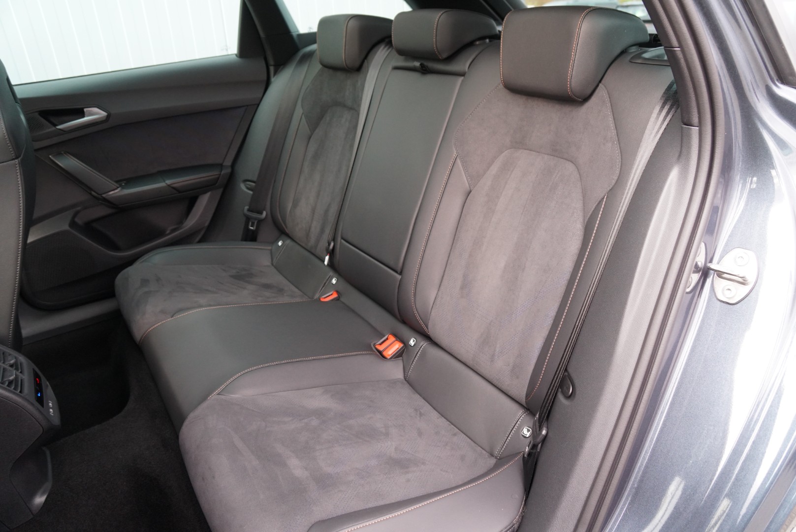 Sitzbezug: Stoff Dinamica / Kunstleder schwarz mit blauen Akzenten