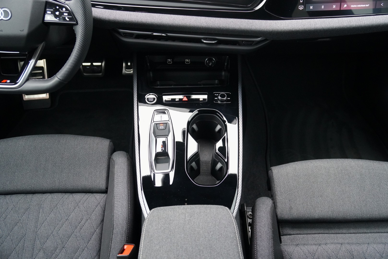 • Interieur S line mit Sportsitzen Stoff Kaskade, schwarz, S-Emblem